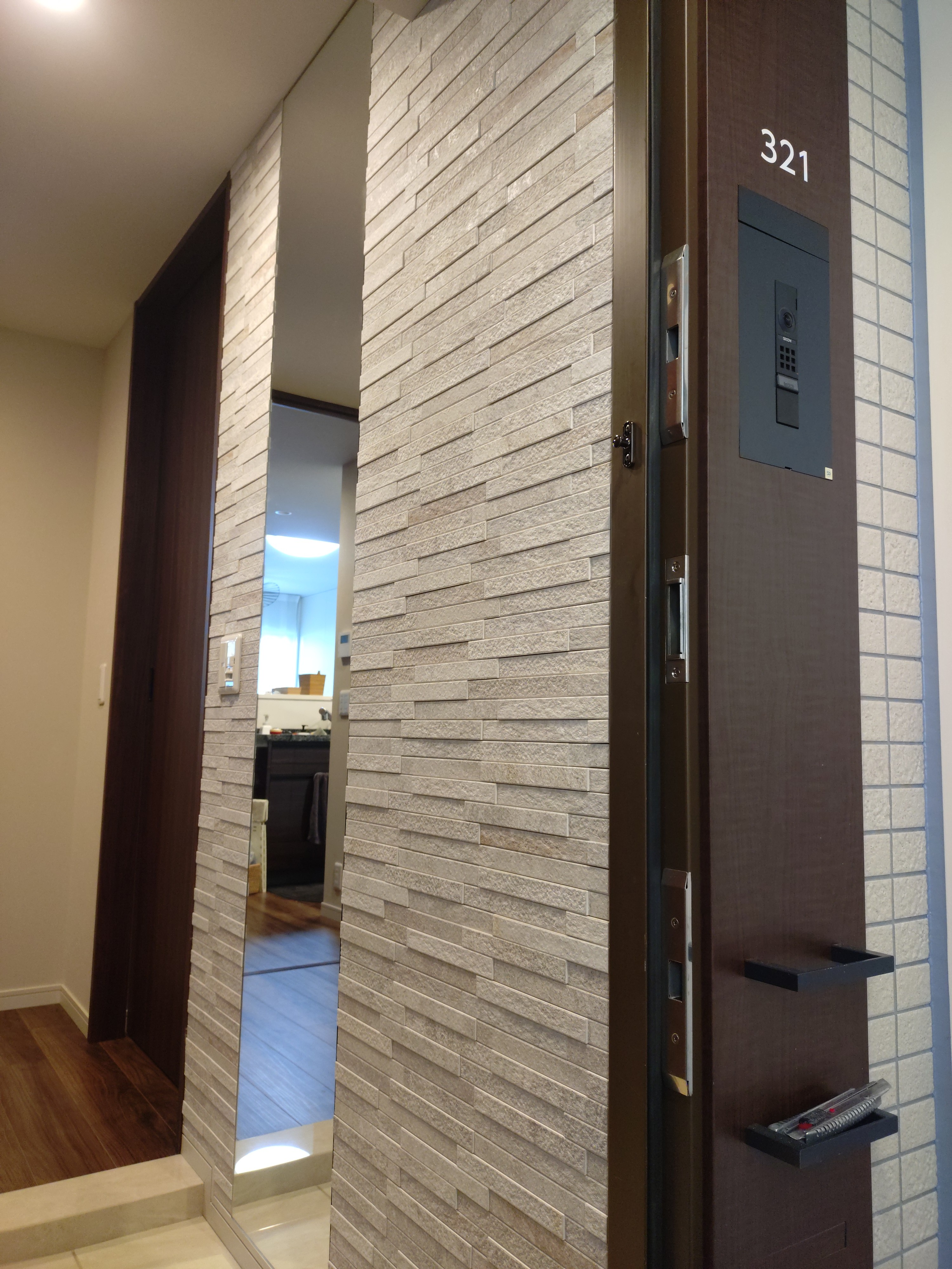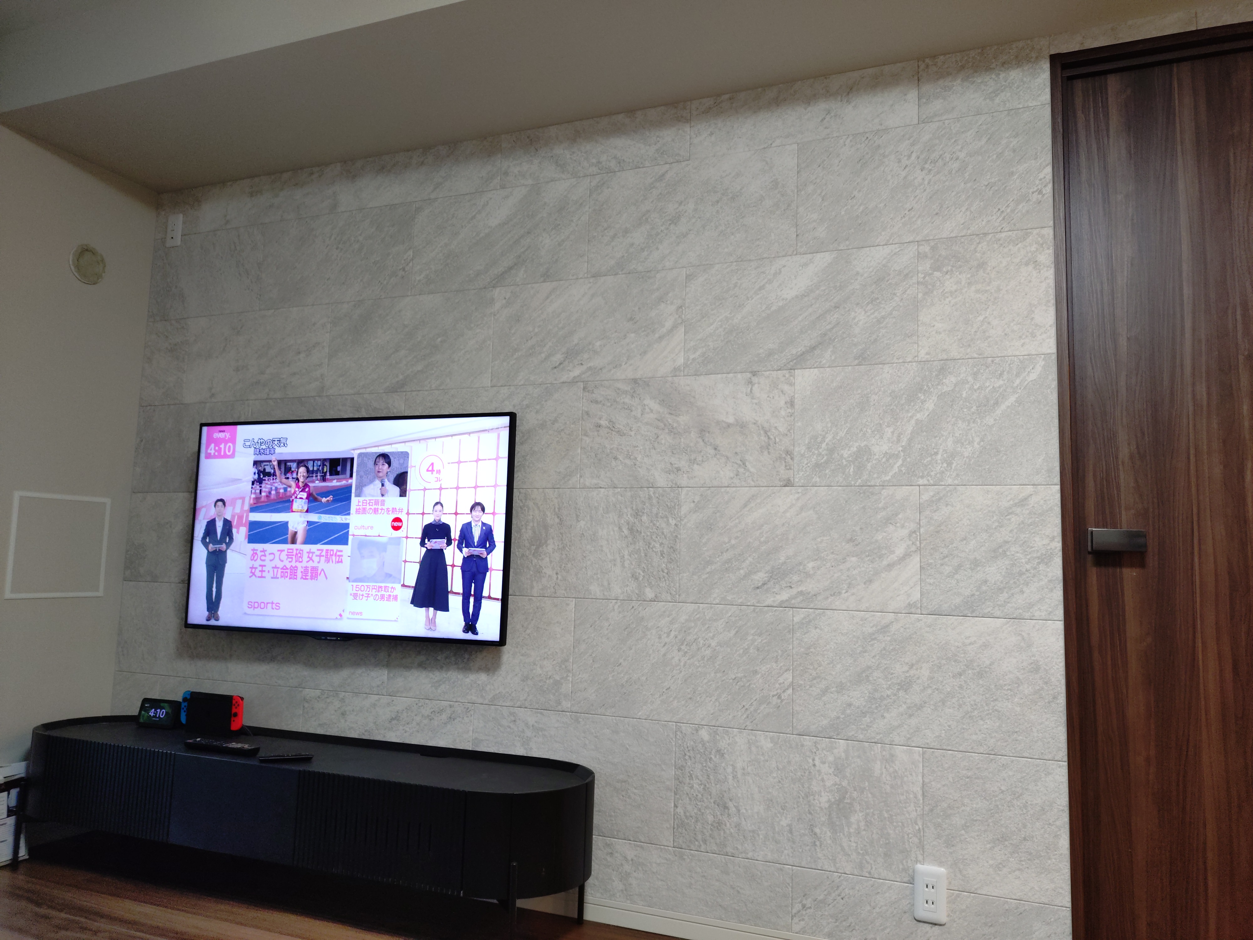 世田谷区の世田谷喜多見ザ・テラスにてインテリアオプション施工をしました。玄関はエコカラット・ディニタ☓オーダーミラー、リビングはテレビ壁掛け工事とエコカラット・グランクオーツを施工しました。テレビ壁掛け工事はフリーアームの金具でHDMIケーブルを通すなど追加工事入りましたが無事に時間通りに完工しました。